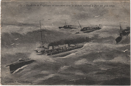 Escadrille de Torpilleurs en manœuvre dans la Manche ralliant le Port par gros temps